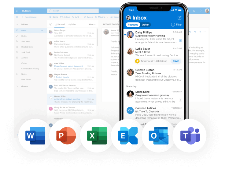 Keep your email account and calendar synced to easily work from anywhere, on any device.